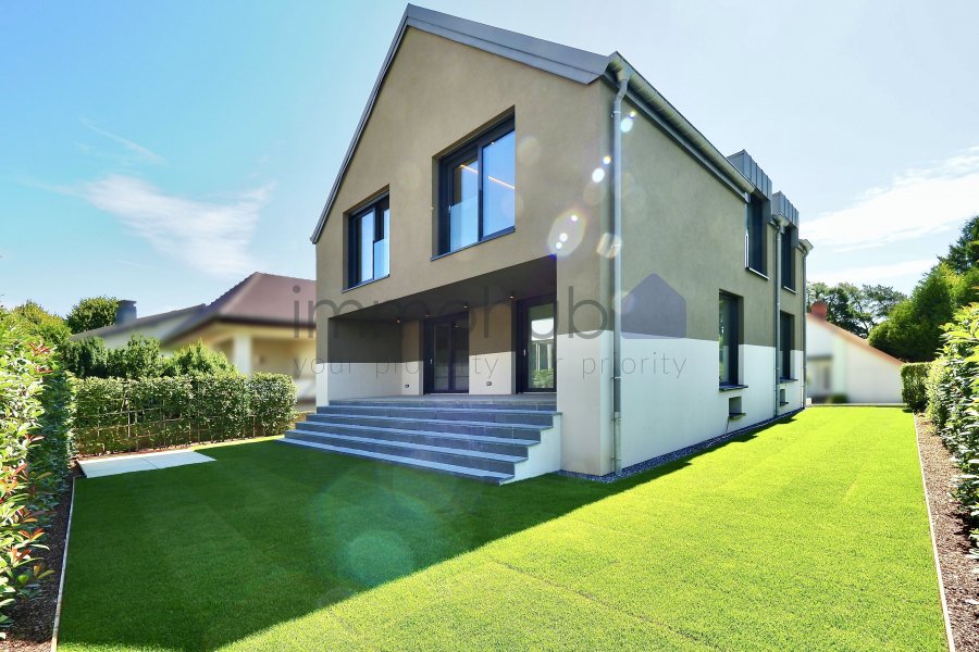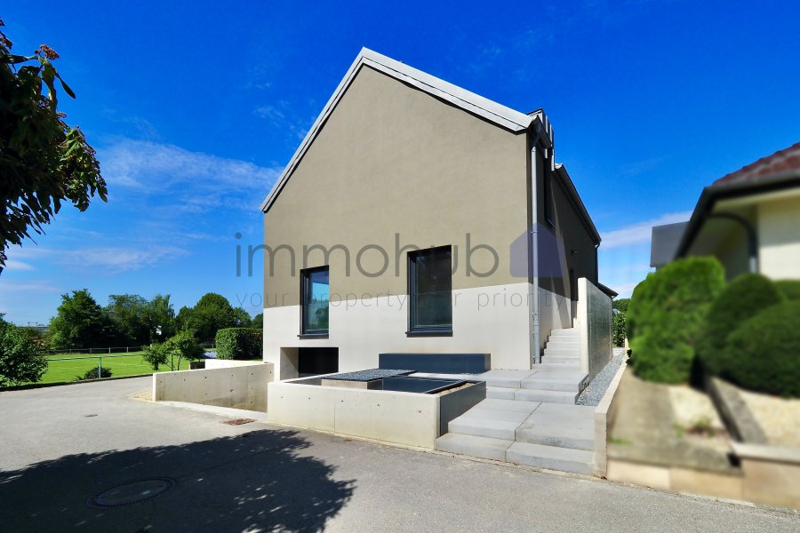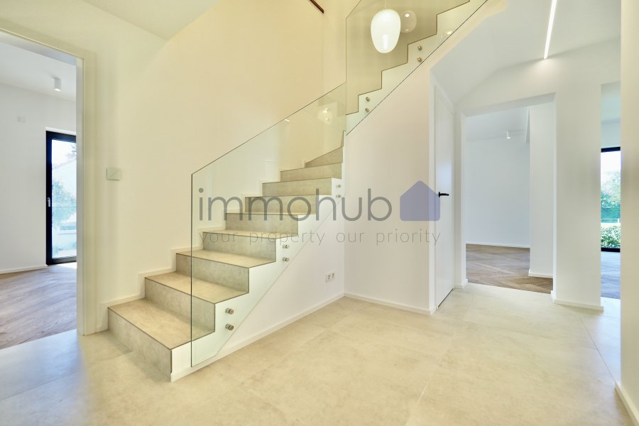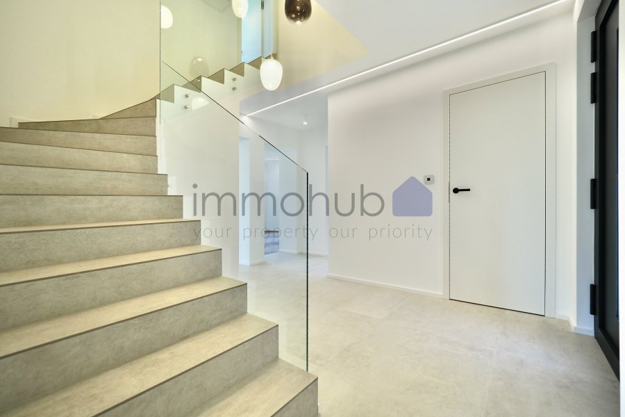 immohub, votre partenaire immobilier à Hesperange - Holleschbierg, vous propose en exclusivité cette magnifique maison unifamiliale libre de quatre côtés, érigée sur un terrain de 3,60 ares, dans une cité résidentielle sans trafic de passage et particulièrement prisée.Ce bien, entièrement rénové et transformé de fond en comble entre 2023 et 2025, se distingue par son architecture élégante et ses finitions haut de gamme, conçues par le bureau d'architecture NOVANTATRE.