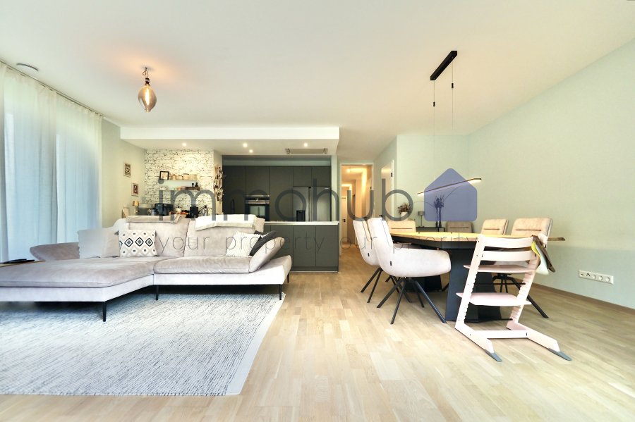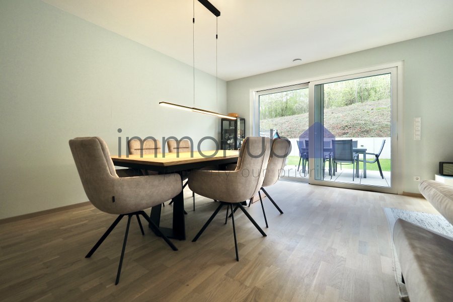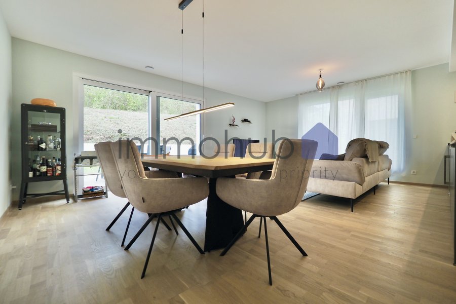 immohub, votre partenaire immobilier à Soleuvre, a le plaisir de vous présenter en exclusivité ce superbe appartement en rez-de-jardin, situé dans une résidence soignée achevée en 2022, au cœur d'un quartier résidentiel calme et sans trafic de passage.Offrant un cadre de vie alliant confort et sérénité, ce bien d'une surface de 104,76 m2 dispose de trois chambres, d'une agréable terrasse ainsi que de deux emplacements de parking intérieurs.