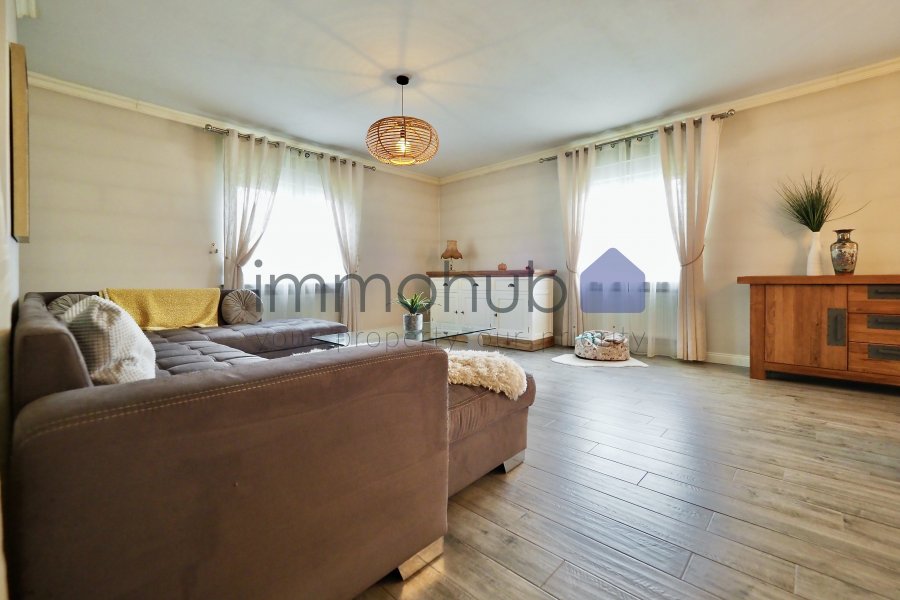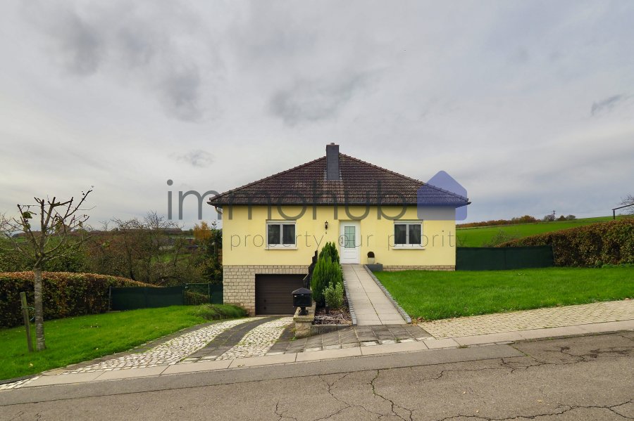 immohub, votre partenaire dans l'immobilier à Hostert, vous propose cette maison unifamiliale, libre de 4 côtés avec vues imprenables, édifiée sur un magnifique terrain de 10,85 ares orienté ouest.Idéalement située dans une rue calme sans trafic de passage, cette maison d'une surface habitable d'environ 155,75 m² se compose comme suit :